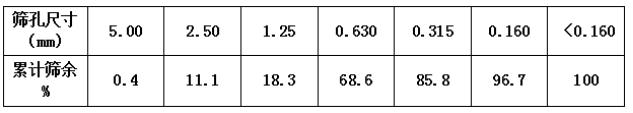 问题:根据《普通混凝土用砂、石质量及检验方法标准》JGJ52-2006,已知干砂500g的筛分析试验结果如下:试计算该砂的细度模数?()[计算题]